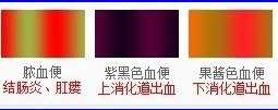 鲜血便:痔疮、直肠息肉、肛裂、直肠脱垂。脓血便:直、结肠癌,溃疡性肠炎。